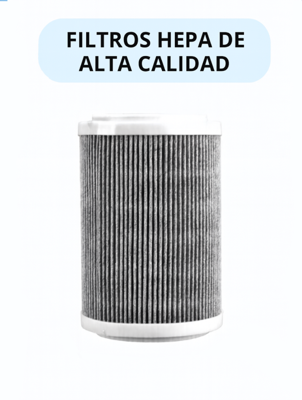 Filtros HEPA de alta calidad: atrapan hasta el 99,97 % de partículas microscópicas y son fáciles de reemplazar.